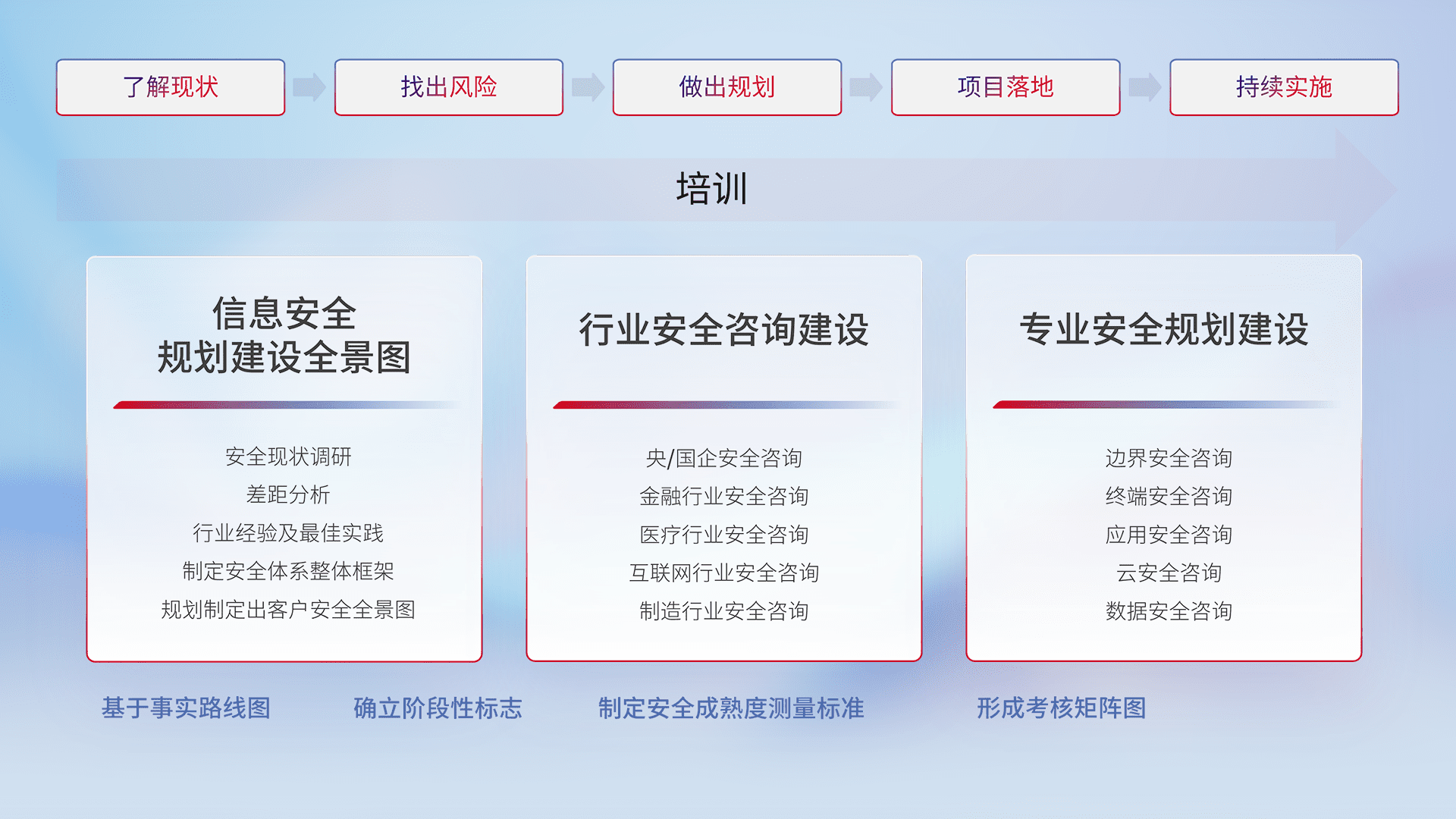 针对客户行业特性,,,将宏观的安全战略和需求,,,通过专业的交付服务,,,,实现项目落地,,,为客户提供标准规范的集成交付服务。。。